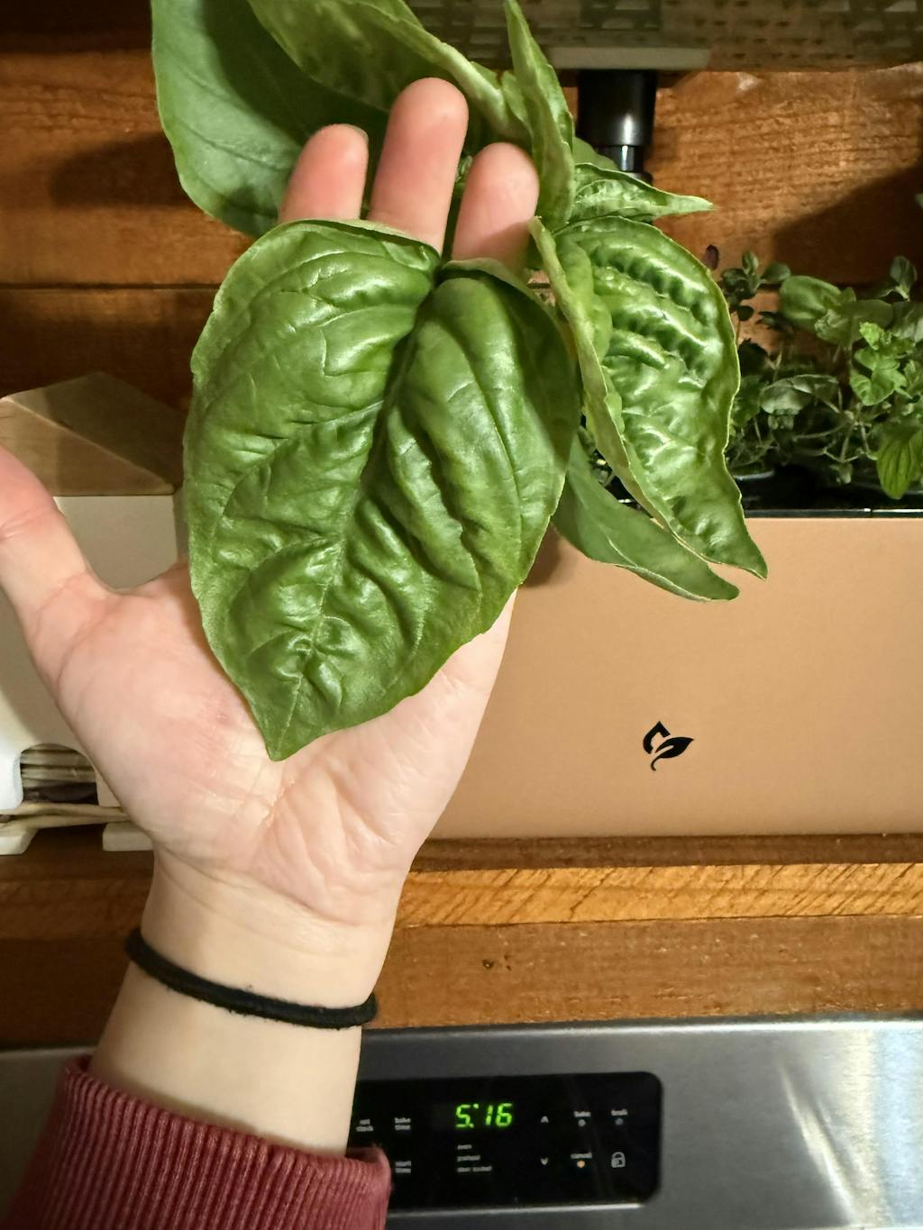 This basil is insane!! It’s growing so fast and the leaves are as big as the palm of my hand!