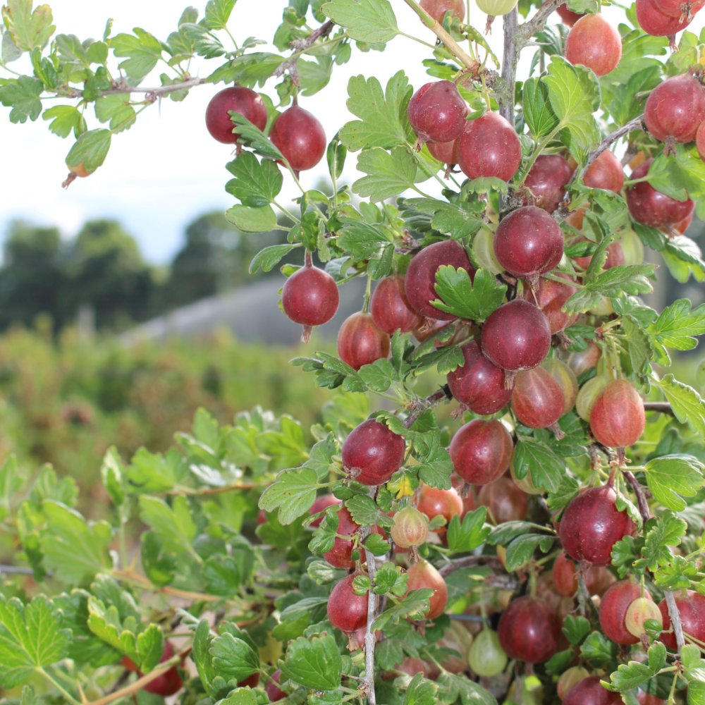 Hinnomaki Red gooseberry is a variety from Finland with superb flavor, high yields, and a beautiful red fruit color. The outer skin is tangy while the flesh is sweet. The plants grow upright and are mildew resistant. These very productive plants are adaptable to various growing systems, hedge or ornamental. The sweet berries can be eaten fresh or baked in a pie. This is truly an outstanding variety.