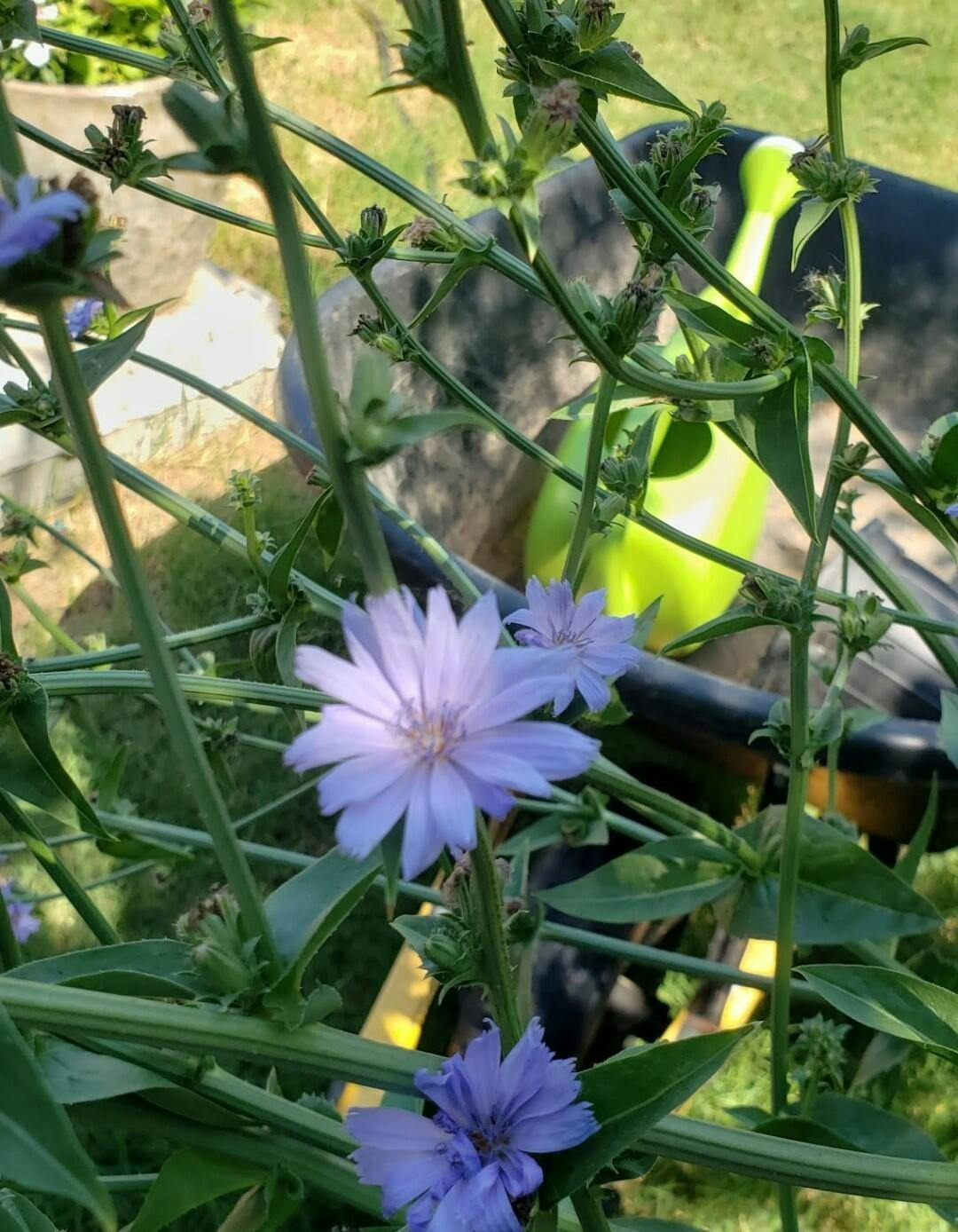 Cichorium intybus. Chicory is a versatile plant known for its bitter, flavorful leaves and vibrant blue flowers. Widely used in culinary applications, chicory leaves can be enjoyed raw in salads, adding a slightly bitter edge, or cooked to mellow their flavor. The plant’s roots are often roasted and ground as a coffee substitute or additive. Rich in vitamins A, C, and K, as well as fiber and minerals, chicory supports overall health. It’s also used medicinally to aid digestion and liver function.