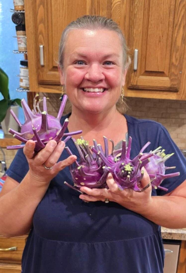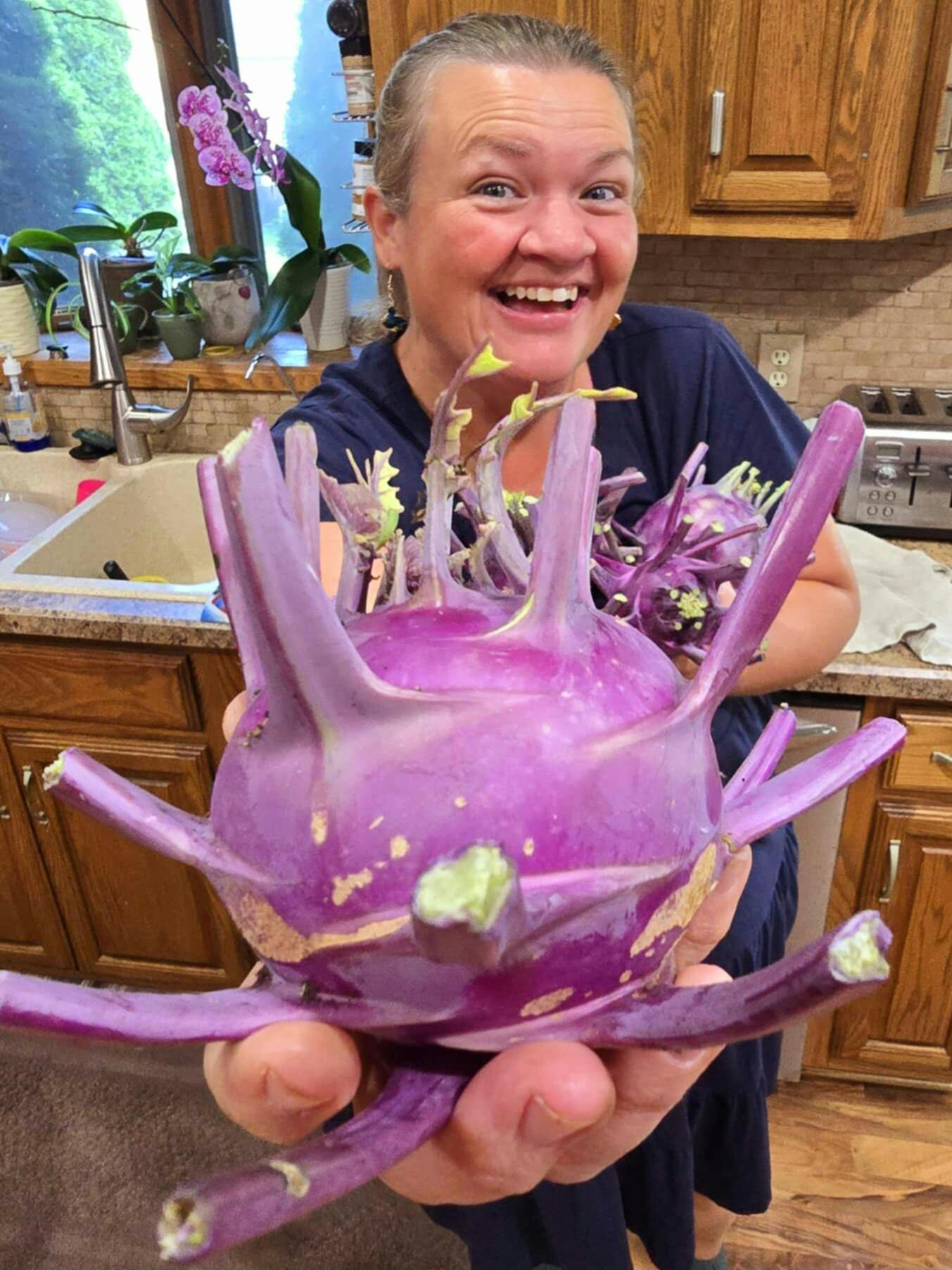 I appreciate the color of this in my veggie garden. The flavor is also fantastic. Best when harvested before getting too large.