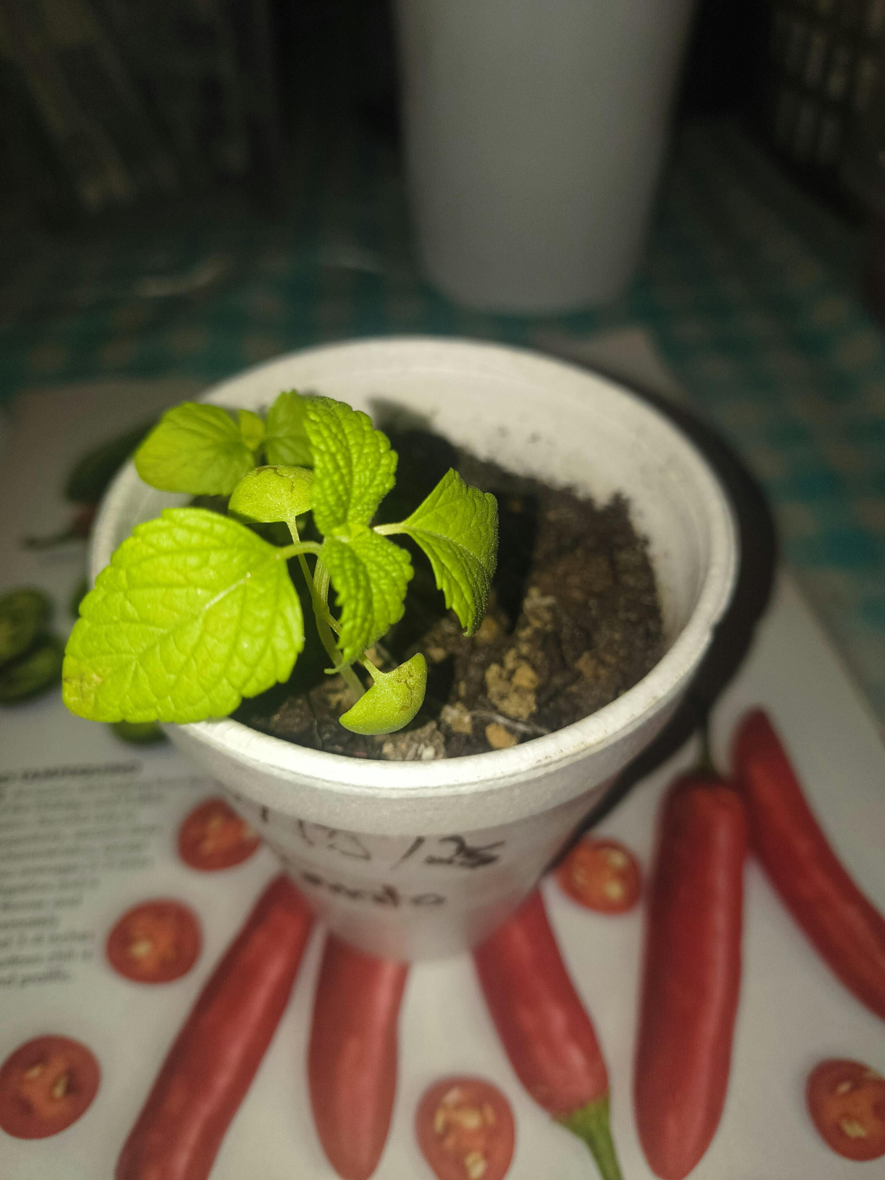 First time ever growing chia . 2 out of the 3 came up. Still little seedlings so far so good.