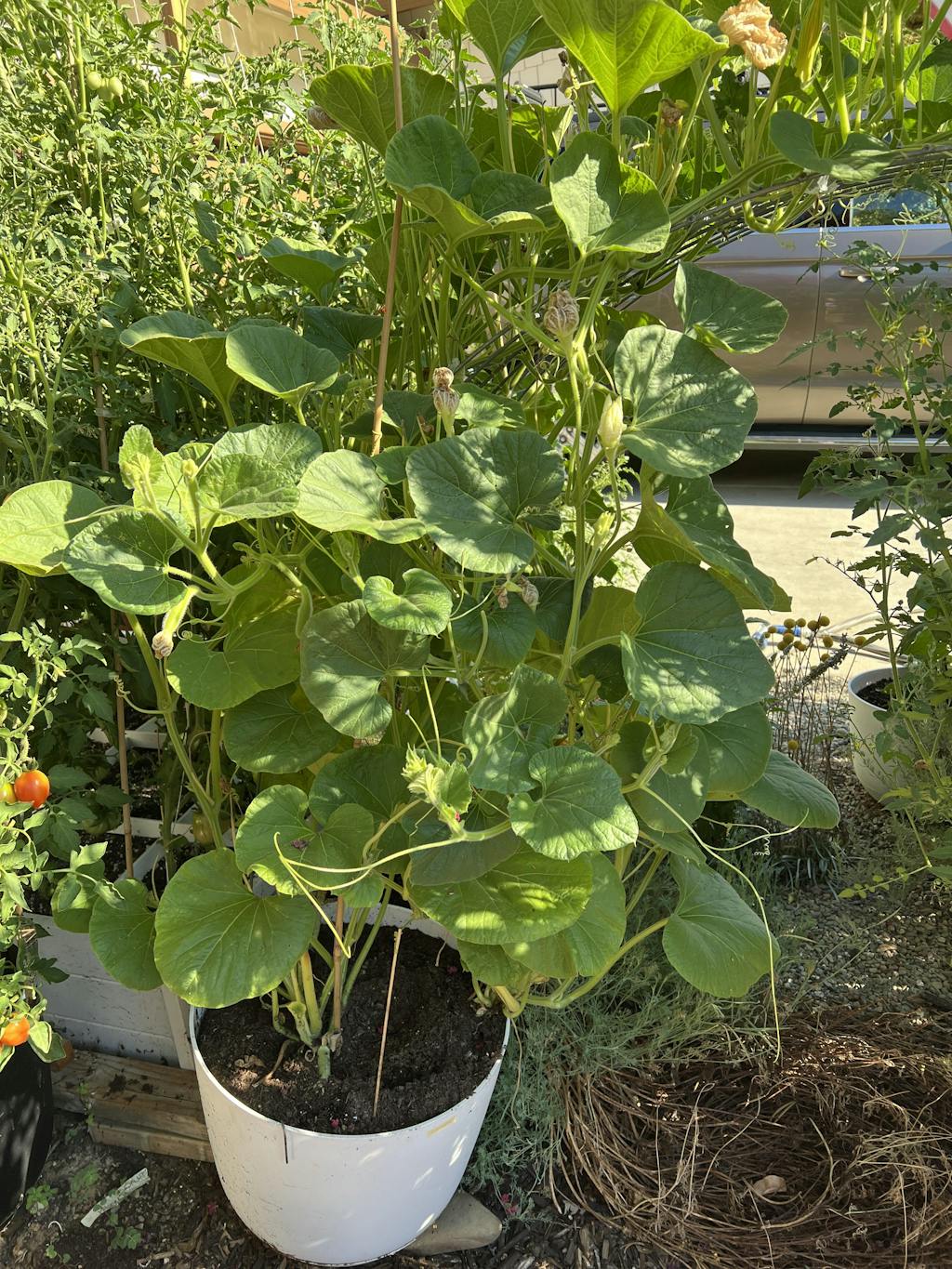 Awesome producer and neat looking fruit! The abundant cucumber beetles seem to ignore the vines too!