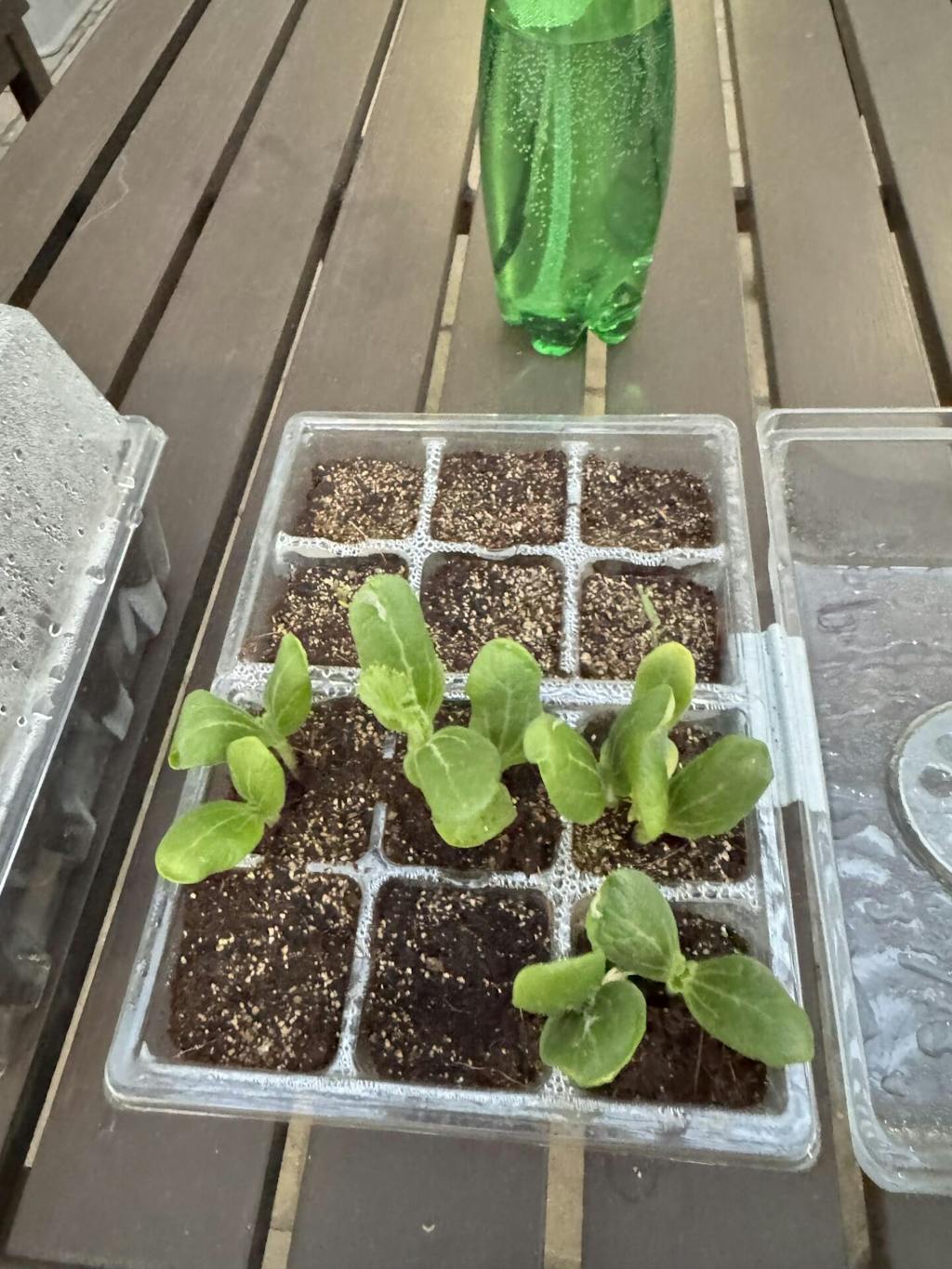 So far all 6 seeds that I planted have germinated and are growing well. I am planning on transplanting them into bigger pots soon until they’re ready for the garden.