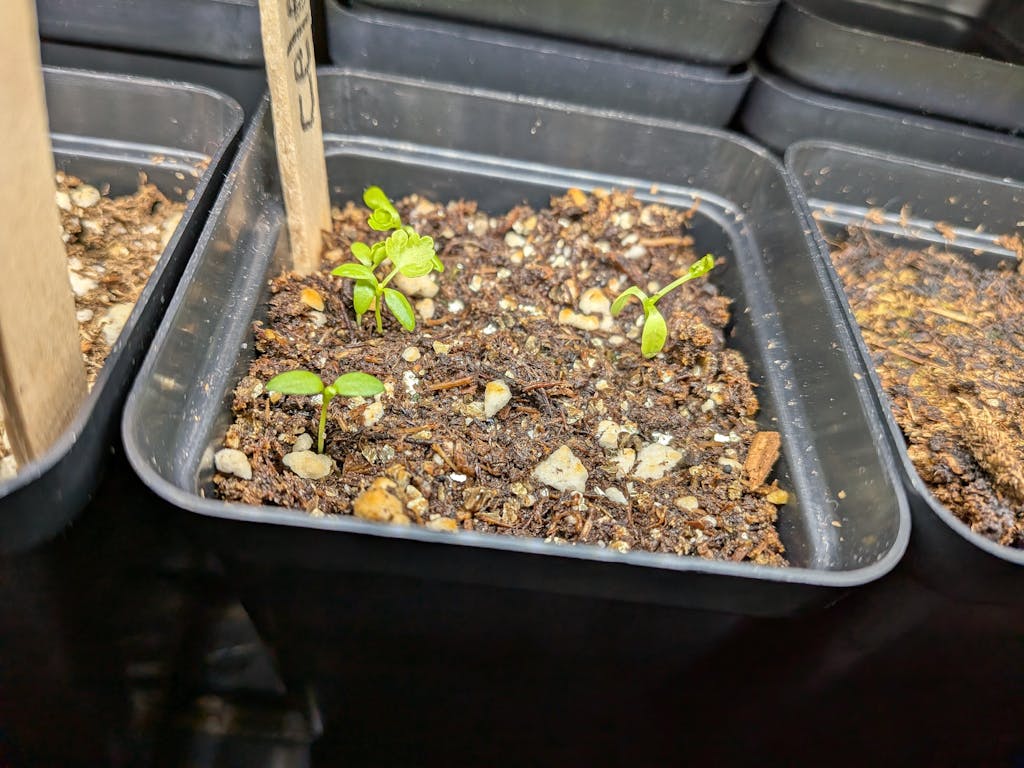 So far all 6 seeds that I planted have germinated and are growing well. I am planning on transplanting them into bigger pots soon until they’re ready for the garden.